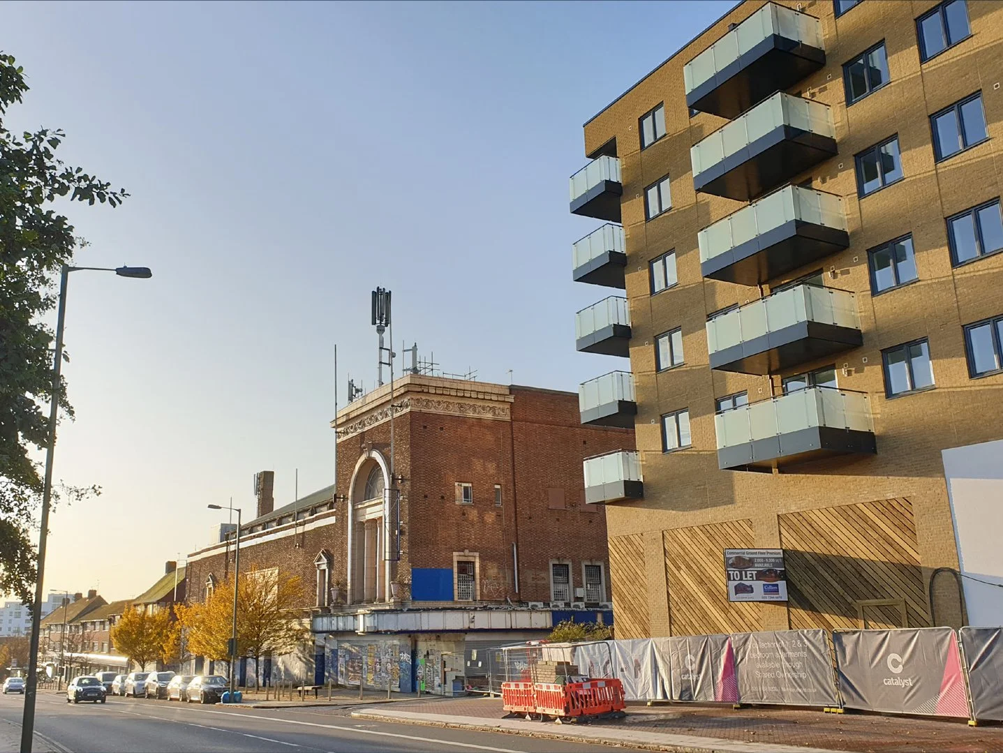 The existing building opened originally as the Savoy Cinema in 1936 to the design of George Coles in the moderne style. The cinema was taken over in 1961 and re-named Essoldo Cinema, but this was short lived and closed in the same year. The building was converted into a Bingo Hall, which was the first to operate in London. It continued as a Mecca Bingo Club until its closure in 2014.